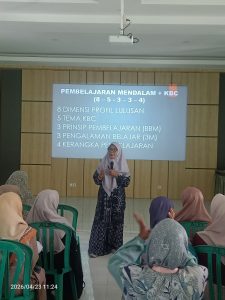 Tidak hanya bersifat teoritis, kegiatan ini juga dirancang interaktif. Para peserta diajak untuk berdiskusi, berkolaborasi dalam kelompok, hingga mempraktikkan langsung penyusunan rencana pembelajaran yang lebih mendalam dan bermakna. Suasana belajar terasa hidup, penuh ide, dan inspiratif.